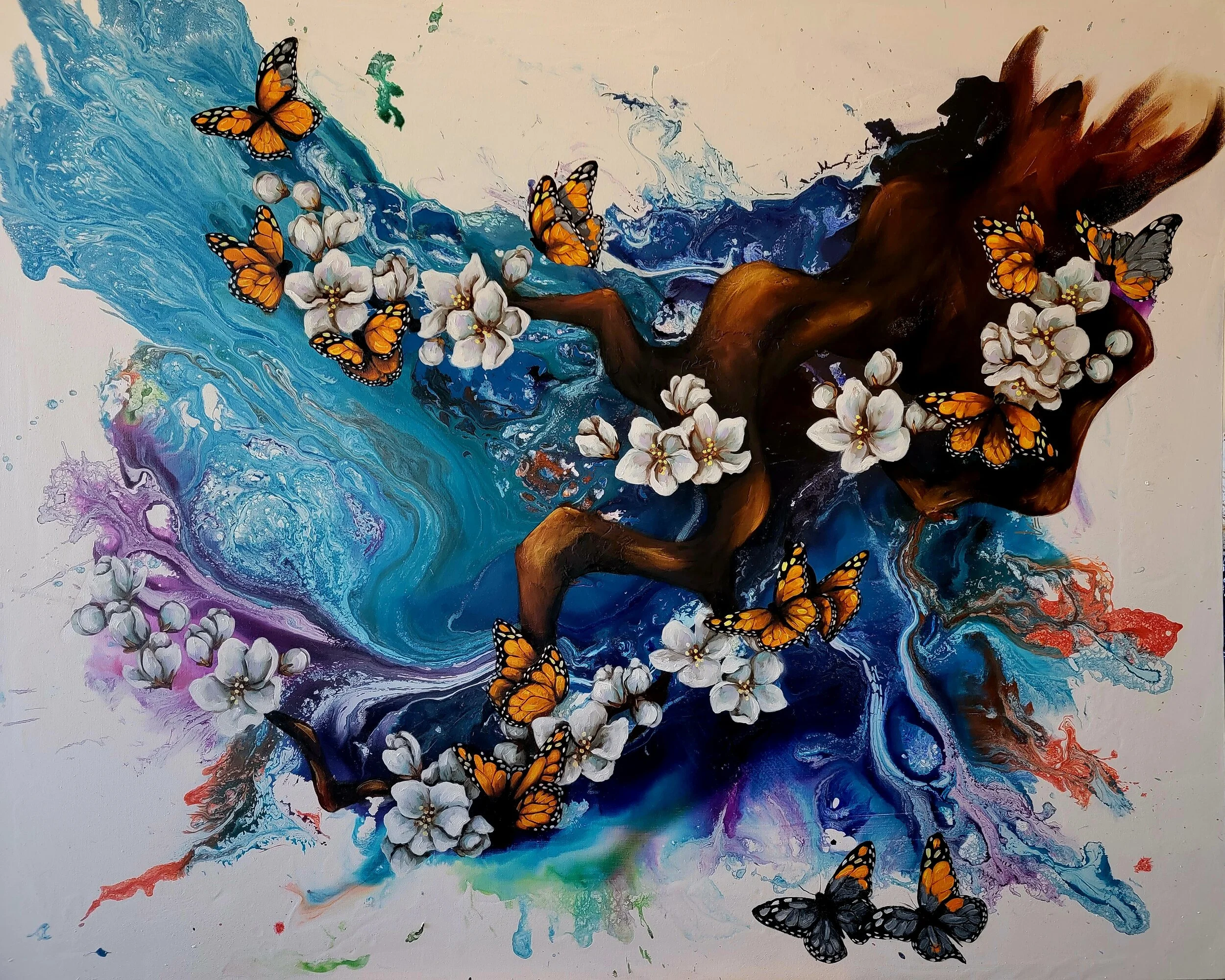 Finding the balance between chaos and control through the combination of surrealism and abstraction as well as oils and acrylics is the theme throughout jill's paintings. Her art evokes a feeling of joy and strength, with such a variety of colors and sizes her pieces will make a statement in any room of your home or office.