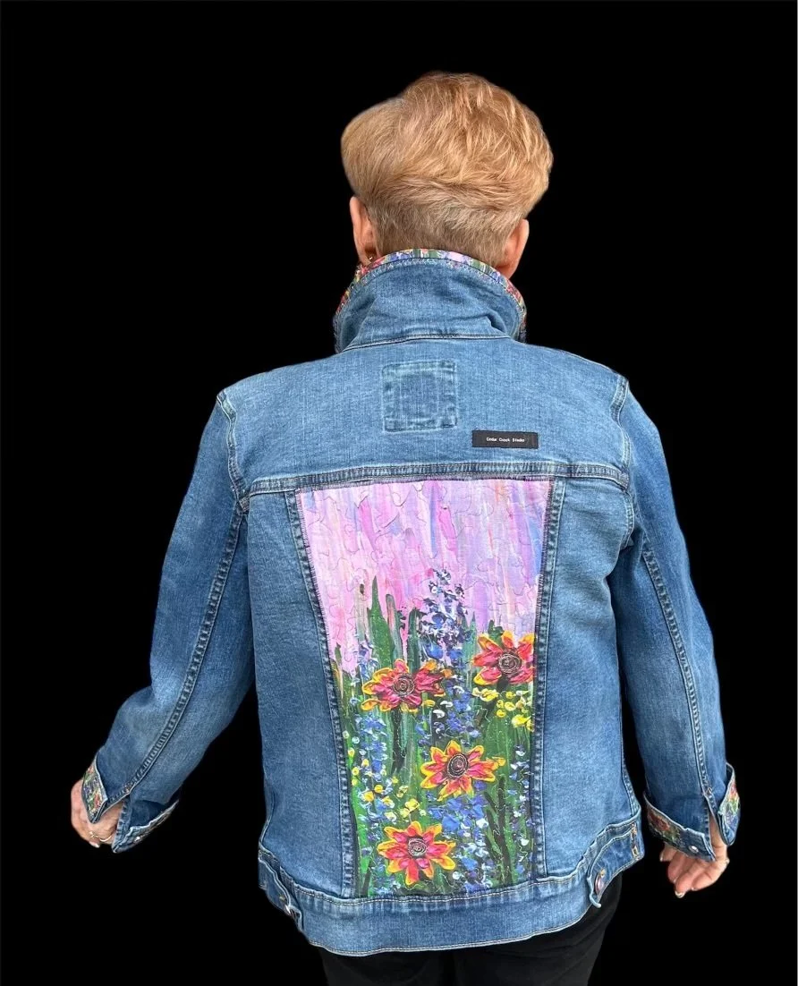 Almost by accident, Ann discovered that she can use her quilting skills to embellish denim jackets, and ever since that discovery, she has enjoyed coming up with a wide variety of designs to offer to women, children, and even the occasional man!